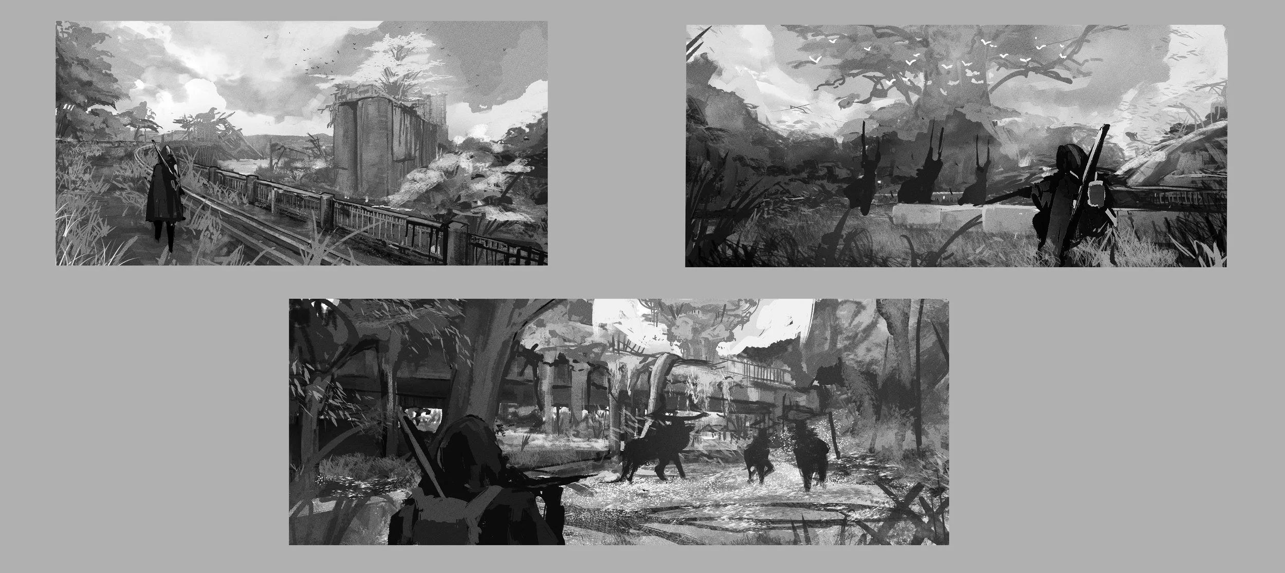 Create a fantastical world, grounded in reality, with a distant future Sci-Fi aesthetic, where nature thrives in a magical way. We needed to lay the ground work for a futuristic game, this included player character design, environments, maps, creatures and building assets.